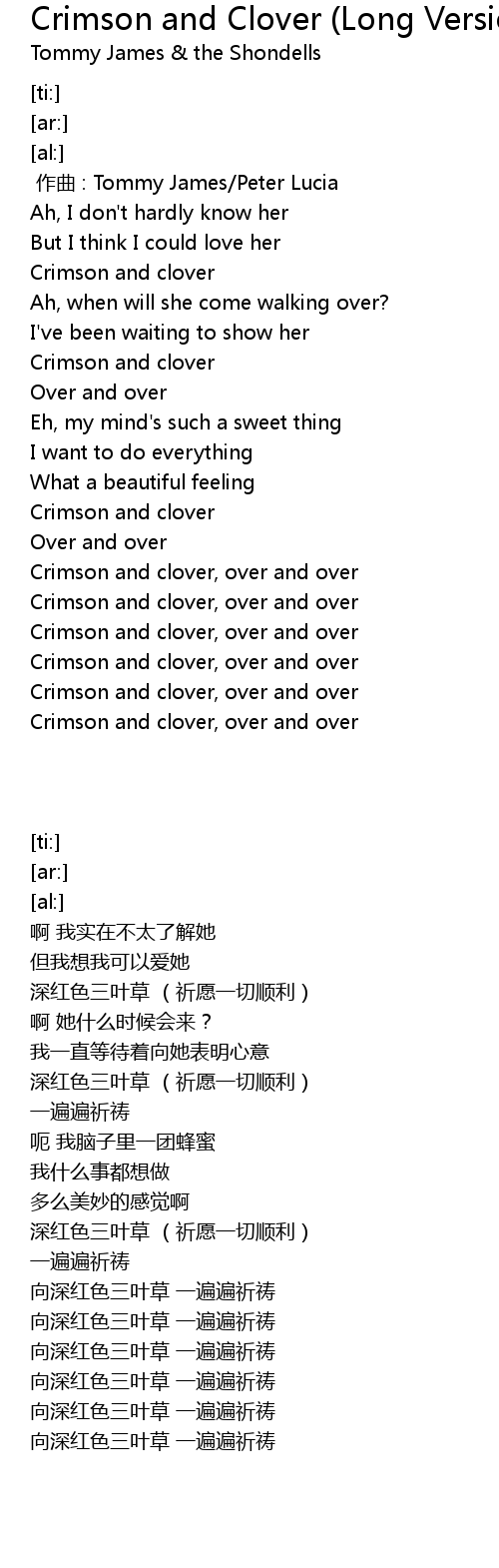 | [04:33.55] | Crimson and clover, over and over |