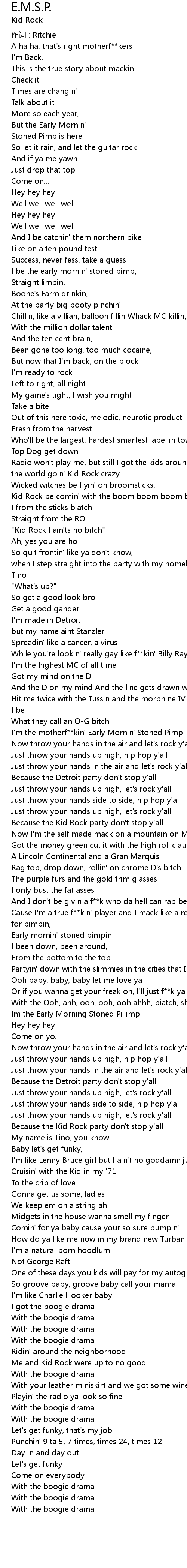 | Kid Rock be comin' with the boom boom boom biatch | |