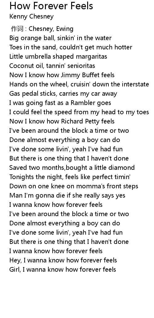 | [02:57.03] | I wanna know how forever feels |