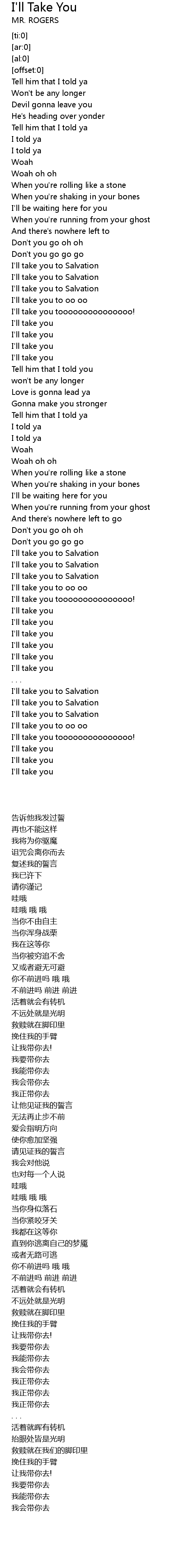 I'll take you to Salvation |