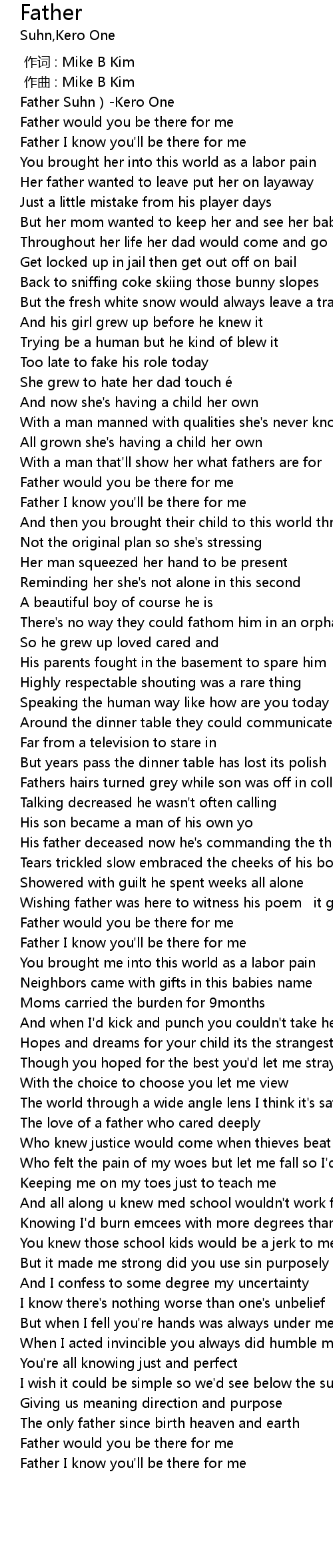 | [02:16.120] | Wishing father was here to witness his poem it goes |