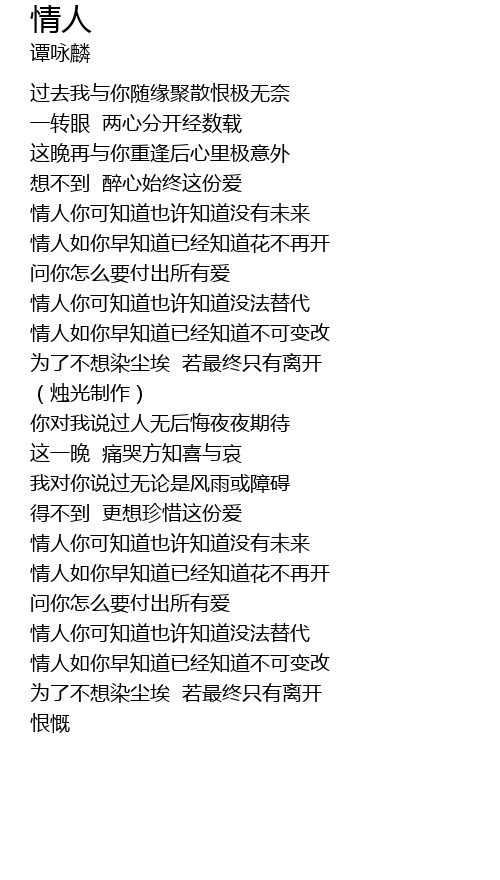 | [00:56.700] | 情人你可知道也许知道没有未来 |