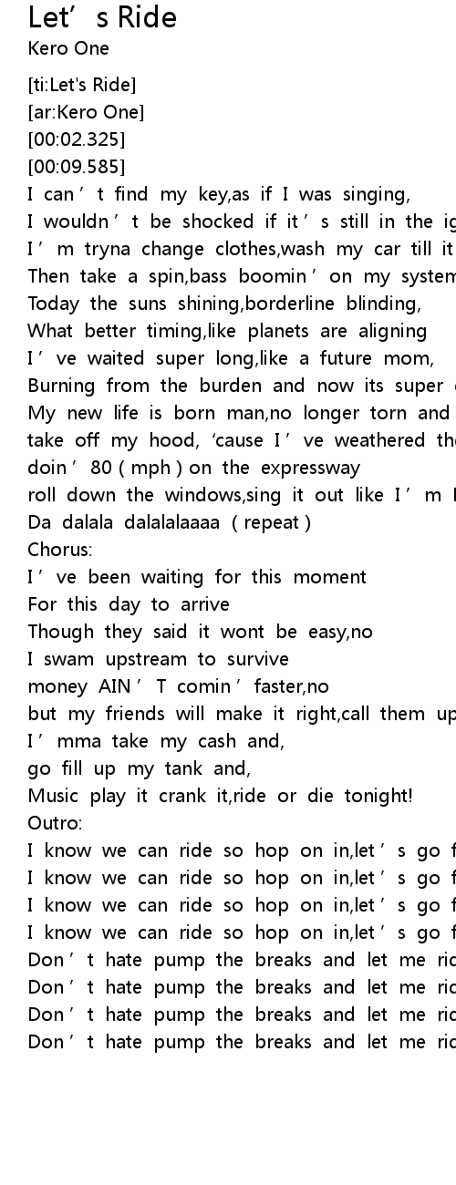 | [02:25.696] | Don ’t hate pump the breaks and let me ride |