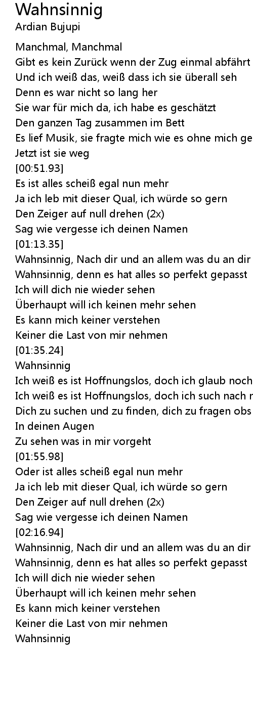 | [01:14.55] | Wahnsinnig, Nach dir und an allem was du an dir hast |