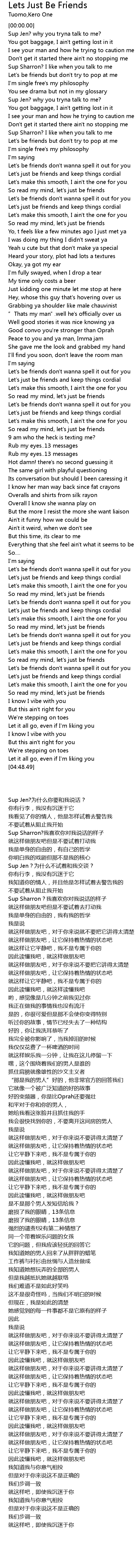 | [00:53.60] | Let' s be friends don' t wanna spell it out for you |