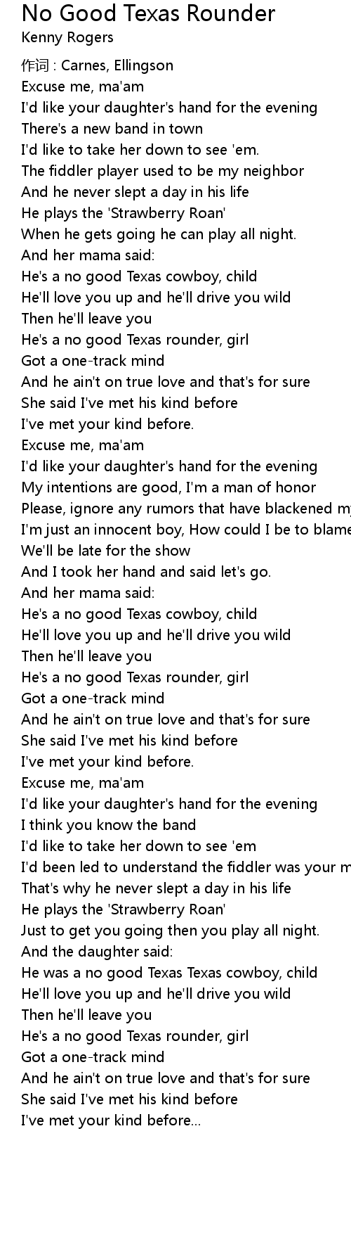 | He was a no good Texas Texas cowboy, child | |