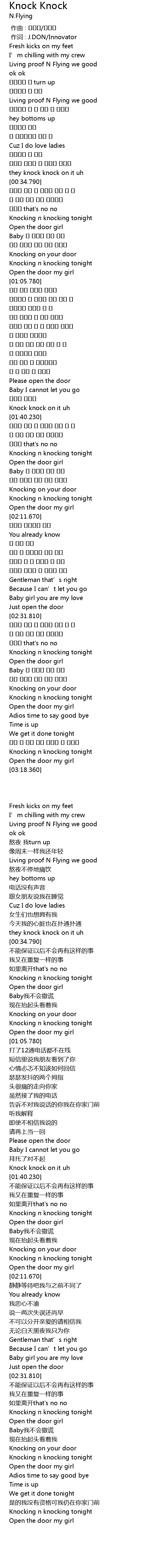 | [03:00.040] | Knocking n knocking tonight |