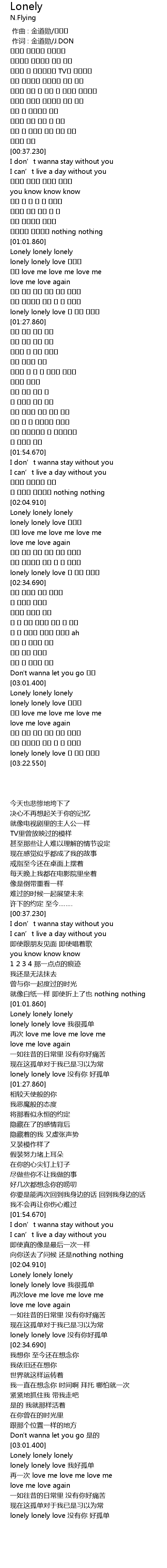 | [01:23.190] | lonely lonely love 너 없는 외로움 |