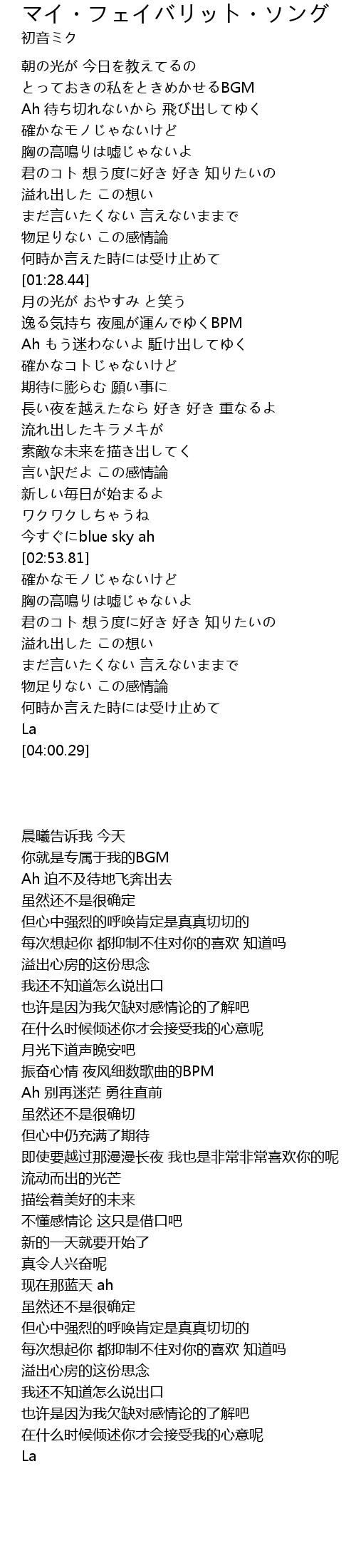 | [00:38.19] | とっておきの私をときめかせるBGM |