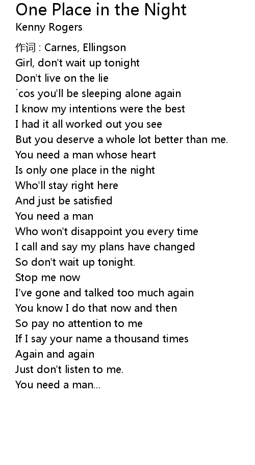 | Girl, don' t wait up tonight | |
