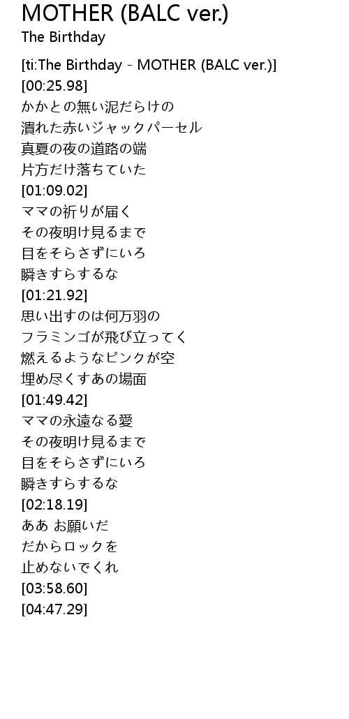 | [ti:The Birthday - MOTHER (BALC ver.)] | |