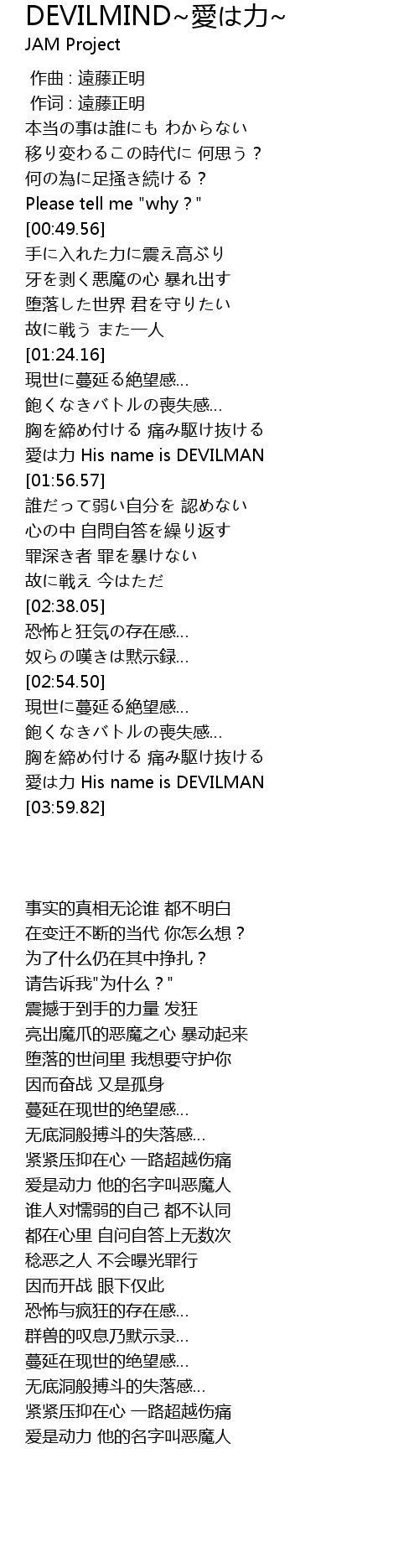 | [03:50.42] | 愛は力 His name is DEVILMAN |