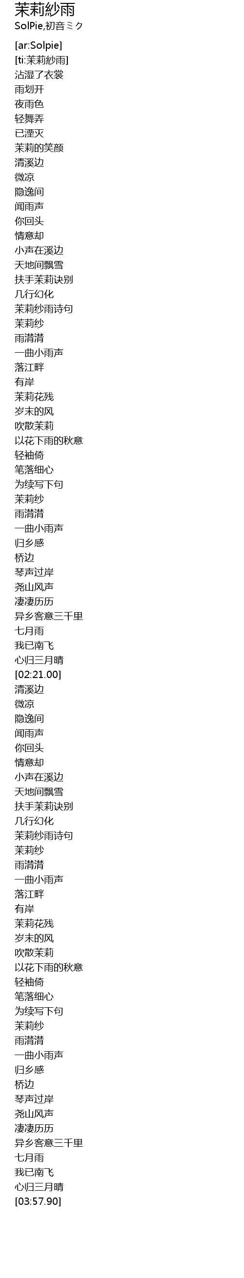 | [02:58.21] | mò lì shā yǔ shī jù |