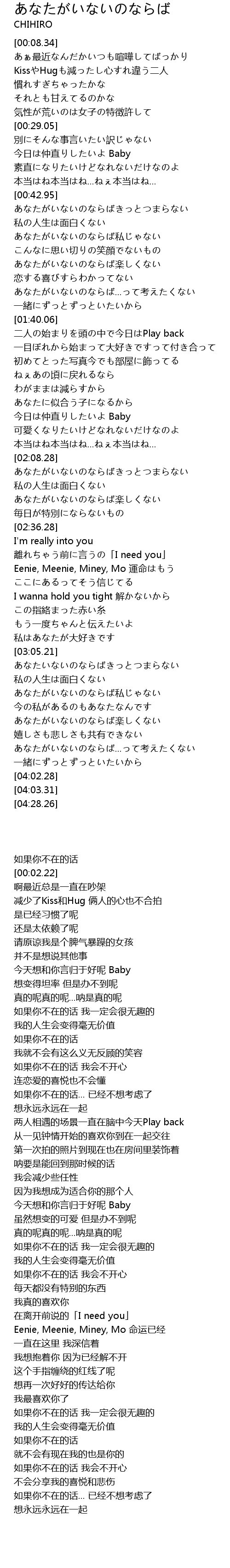 | [02:22.90] | あなたがいないのならば楽しくない |