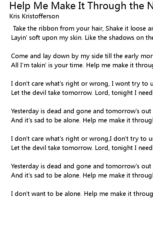 Let the devil take tomorrow. Lord, tonight I need a friend. |