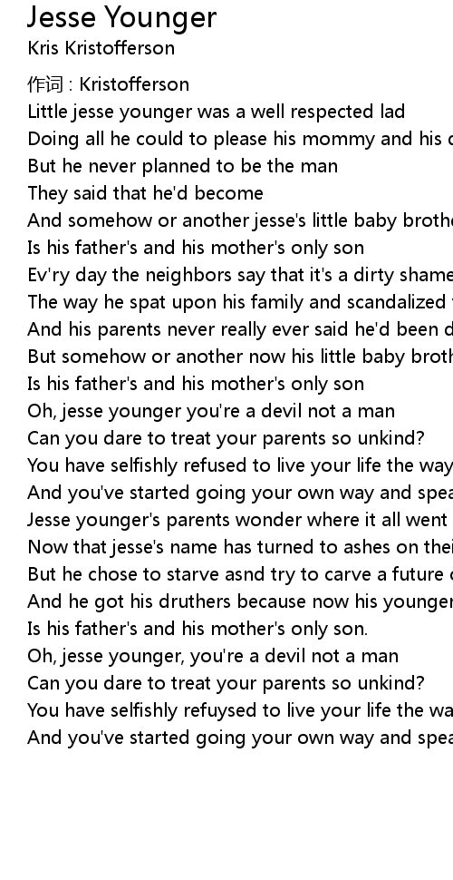 | Song | Jesse Younger |