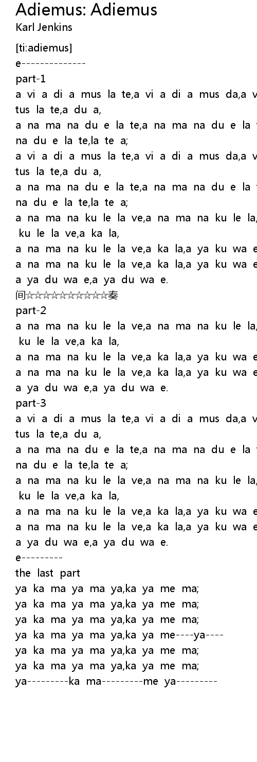 | [00:19.481] | a na ma na du e la te, a na ma na du e la te, a na ma na du e la te, la te a |