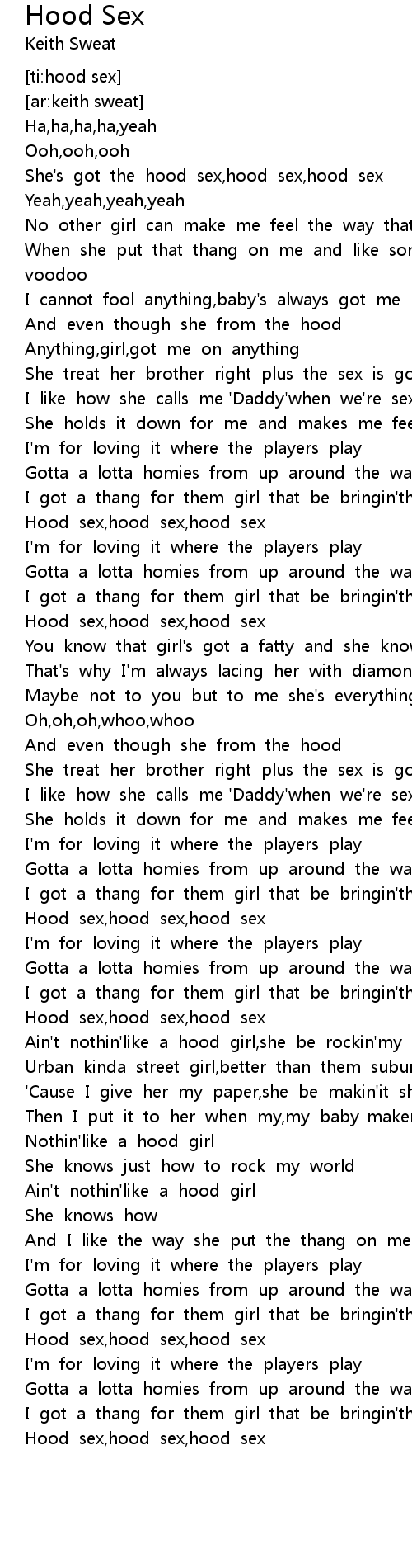 She's got the hood sex,hood sex,hood sex |