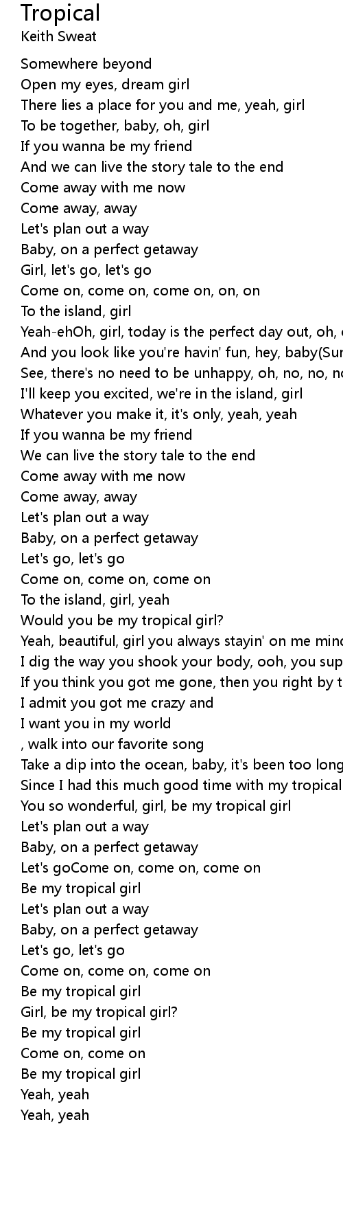 You so wonderful, girl, be my tropical girl |