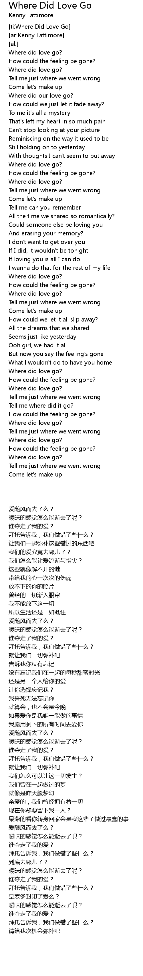 [ti:Where Did Love Go] |