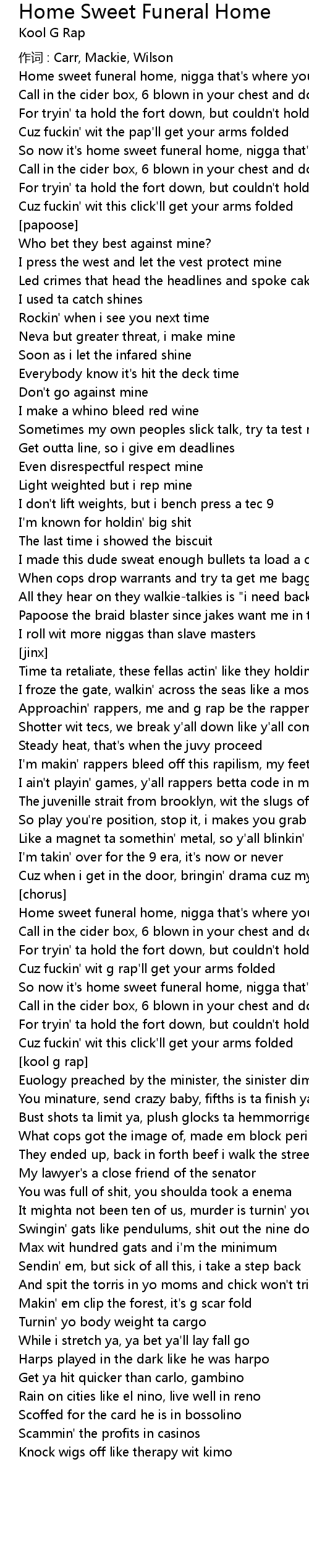 | Home sweet funeral home, nigga that' s where you' re shown | |