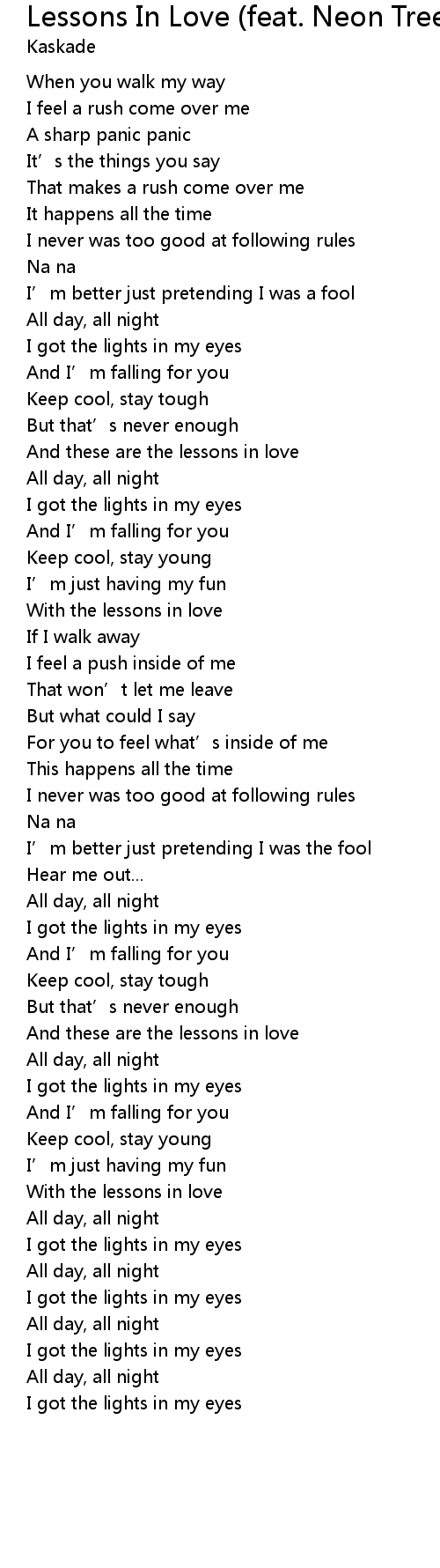 | Song | Lessons In Love (feat. Neon Trees) |