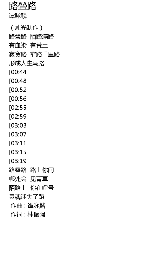 | [00:28] | 路叠路 陌路满路 |