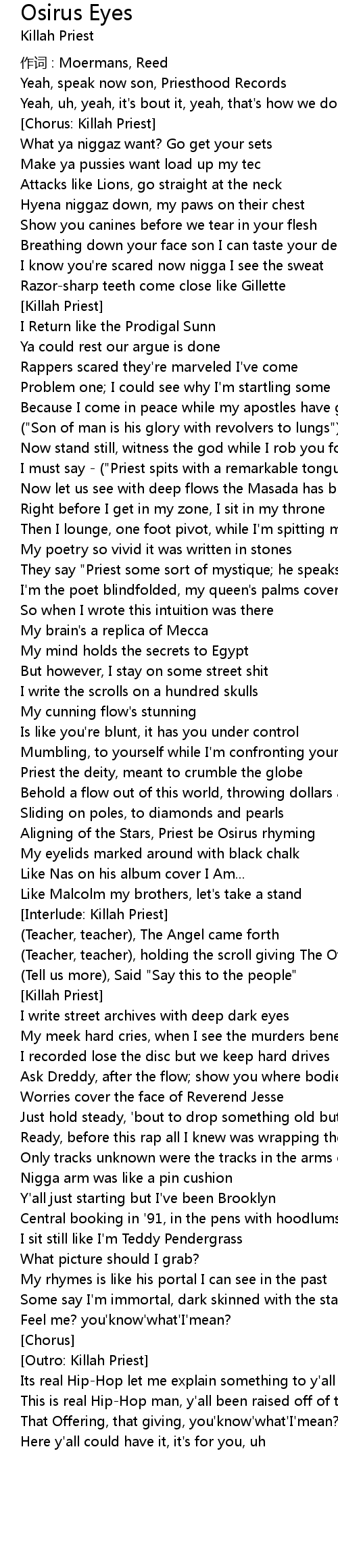 | Aligning of the Stars, Priest be Osirus rhyming | |