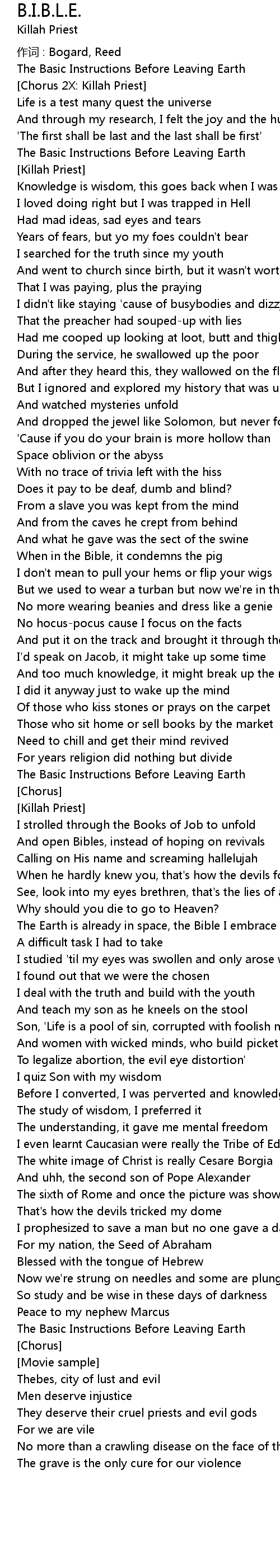 | Chorus 2X: Killah Priest | |