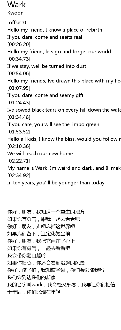 My name is Wark, Im weird and dark, and Ill make you believe |