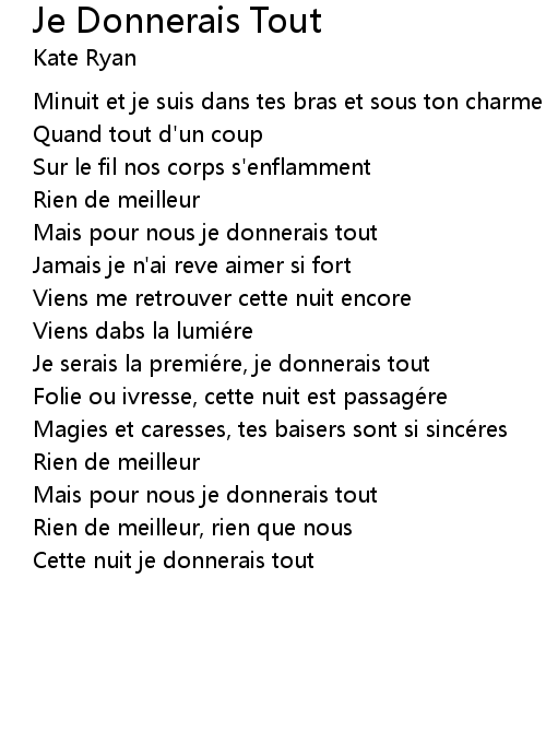 | Song | Je Donnerais Tout |