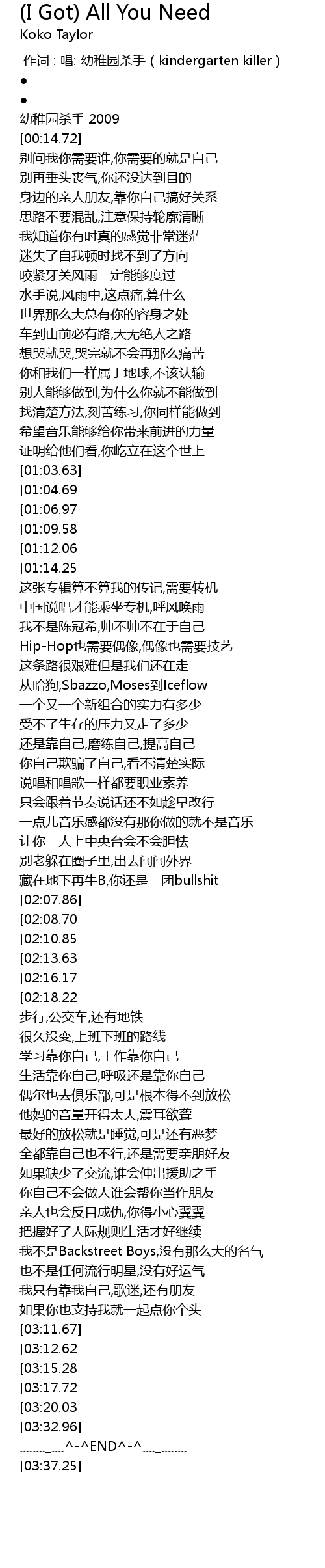 | [02:26.67][02:16.17] | 生活态度就是应该那么那么Hip-Hop |