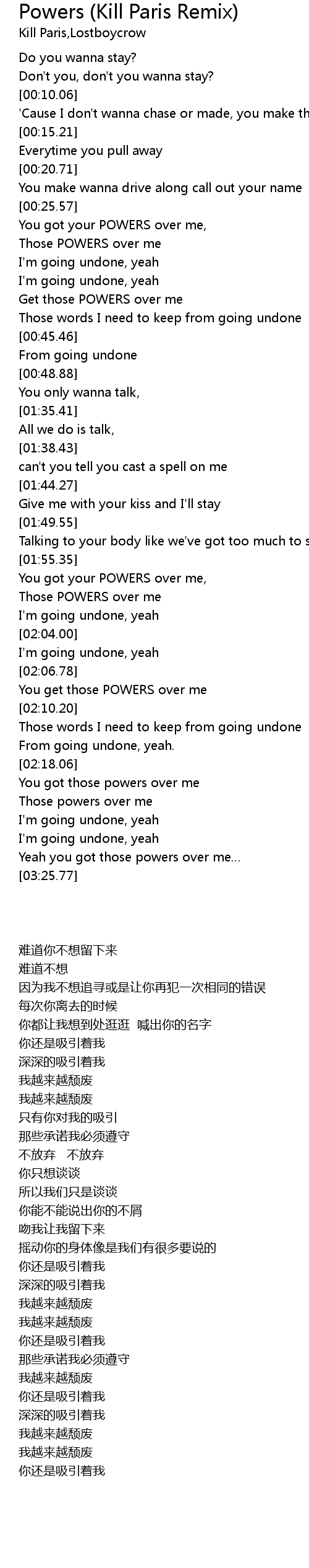 | [03:02.47] | You got those powers over me |