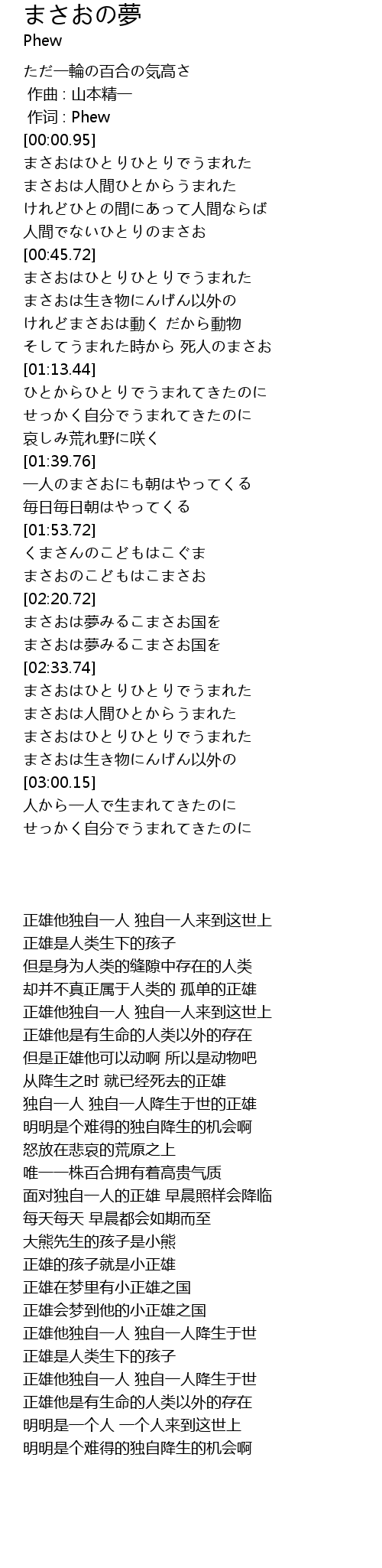 | [02:34.74] | まさおはひとりひとりでうまれた |