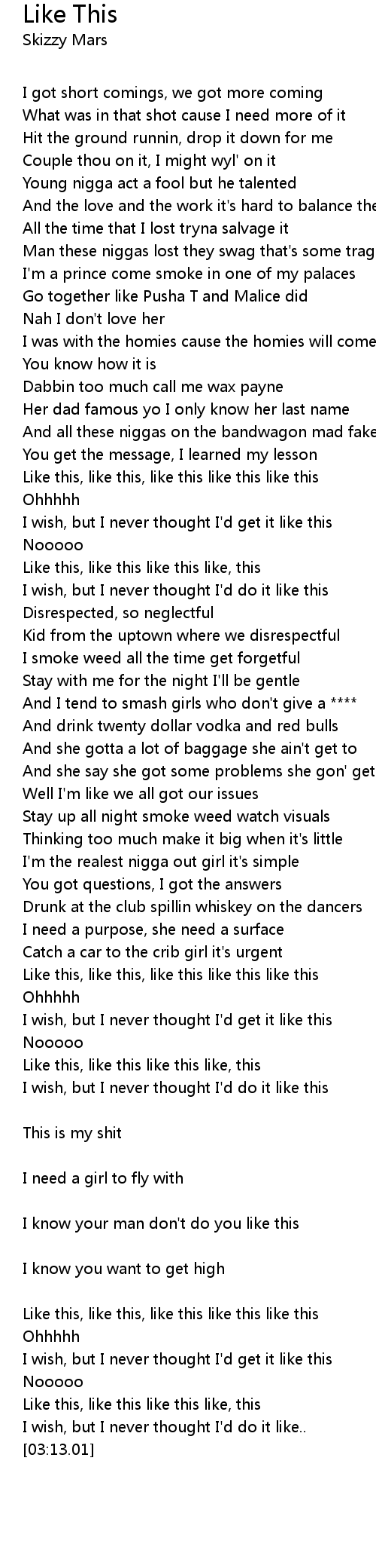 | [03:03.04] | Like this, like this like this like, this |