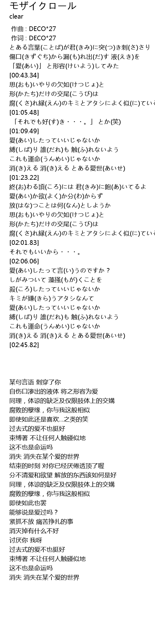 | [00:01.00] | zuò cí : DECO 27 |