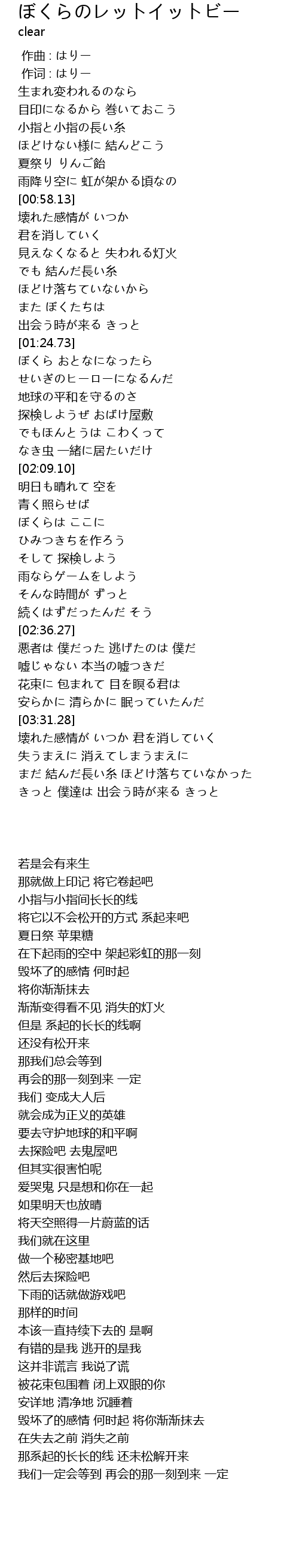 | [00:01.00] | 作词 : はりー |