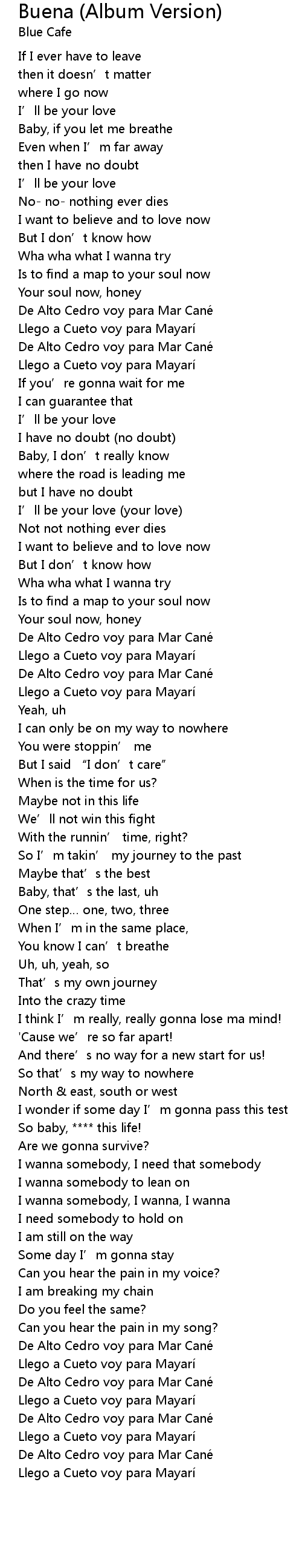 | [00:54.73] | De Alto Cedro voy para Mar Cane |