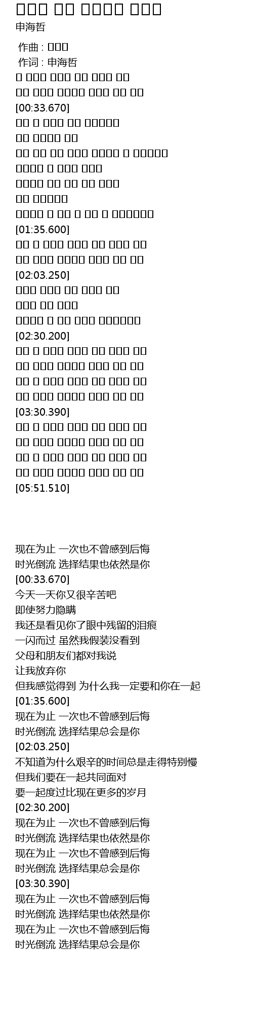| [03:11.860] | 다시 시간을 돌린대도 선택은 항상 너야 |