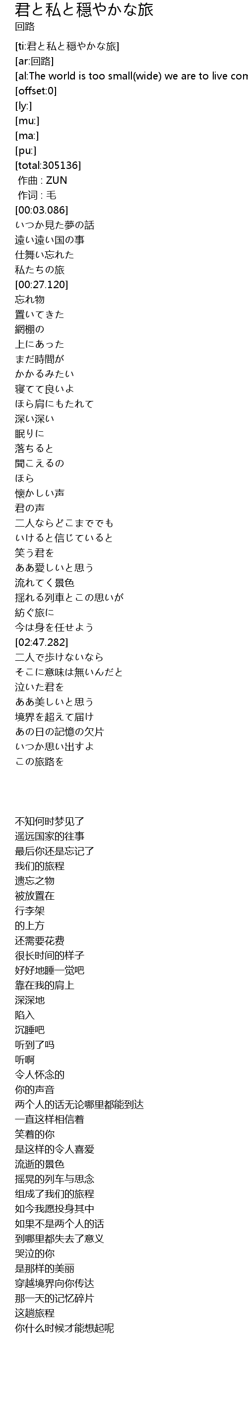 | [ti:君と私と穏やかな旅] | |