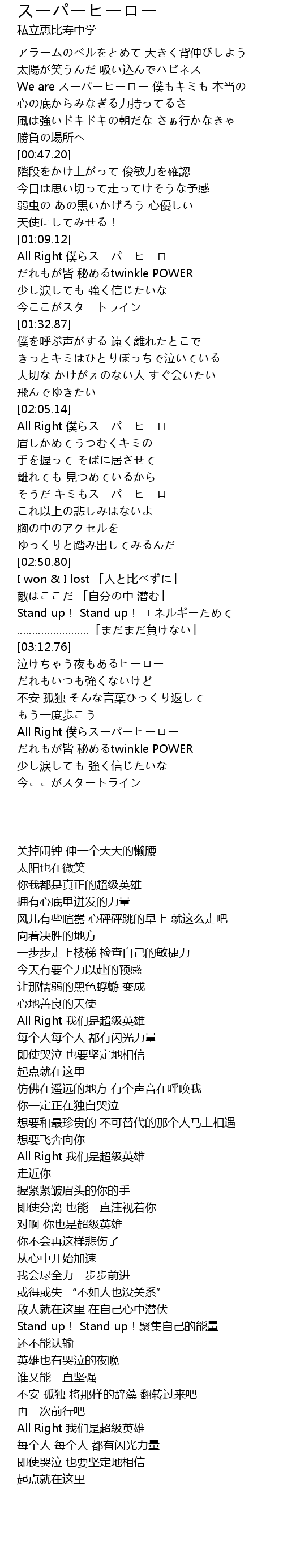 | [02:05.69] | All Right 僕らスーパーヒーロー |