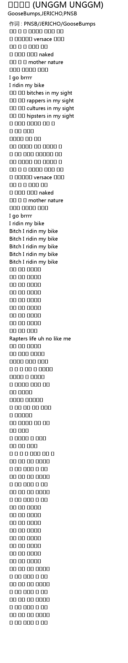 | [00:00.00] | 作词 : PNSB/JERICHO/GooseBumps |