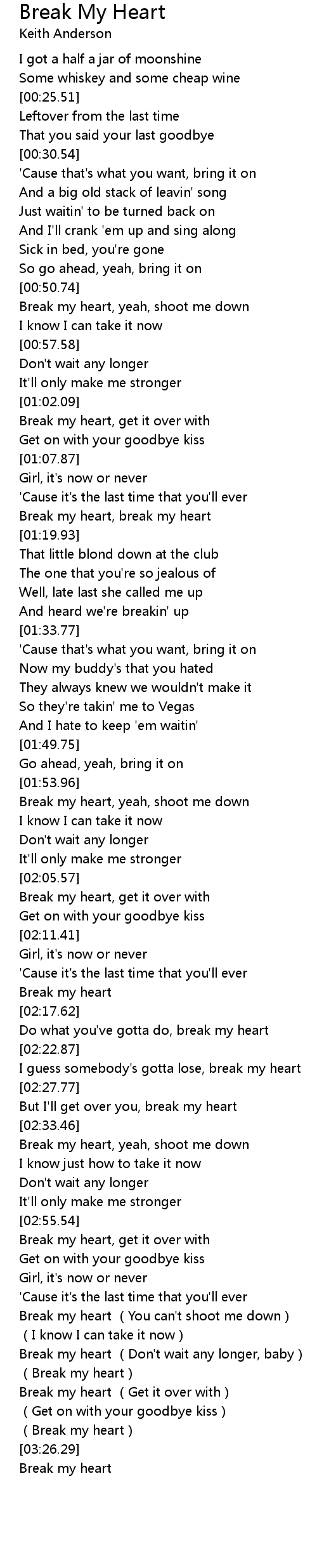 | [02:19.92] | Do what you've gotta do, break my heart |