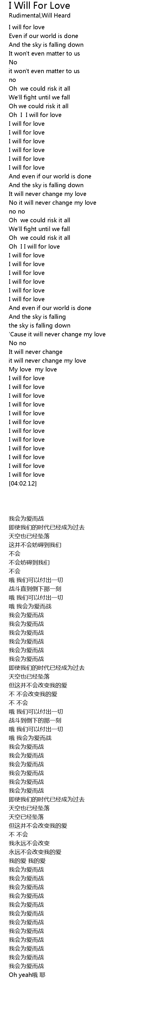 I will for love |