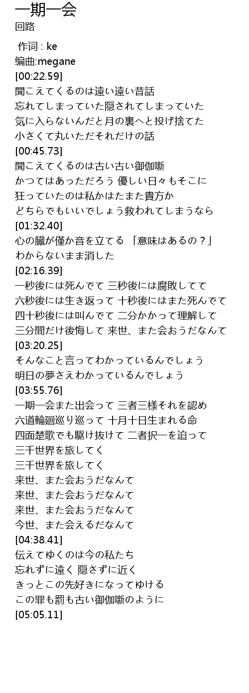 | [04:33.64] | 今世、また会えるだなんて |