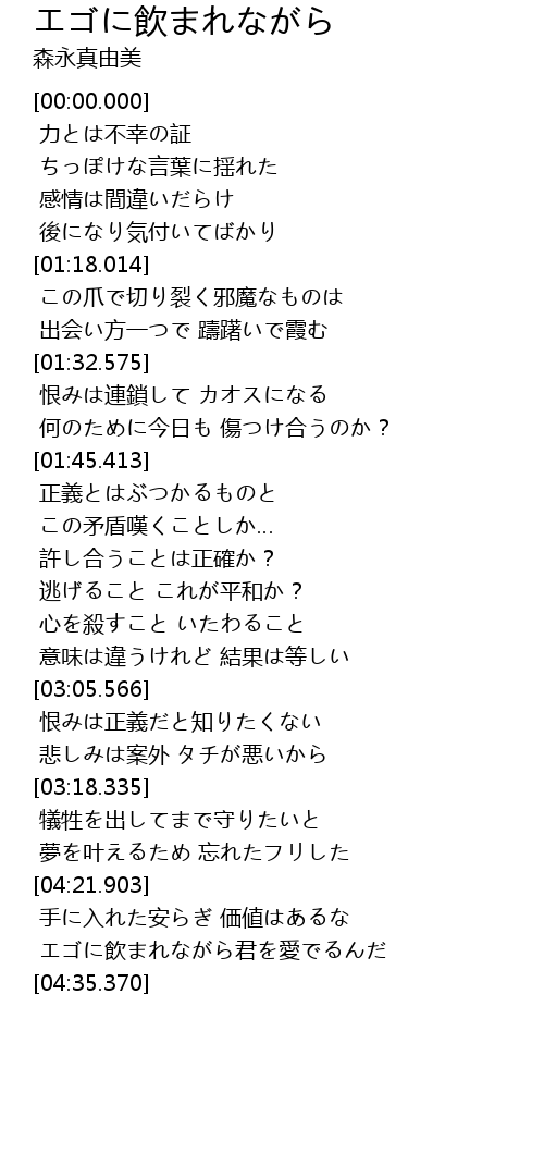 | [04:28.278] | エゴに飲まれながら君を愛でるんだ |