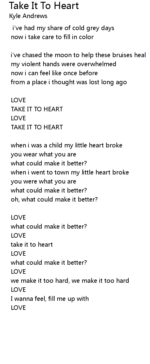 TAKE IT TO HEART |