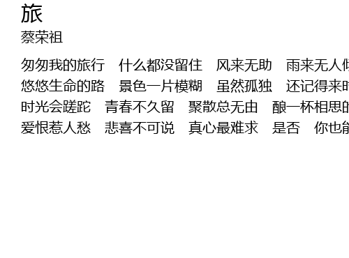 | 匆匆我的旅行 什么都没留住 风来无助 雨来无人倾诉 | |
