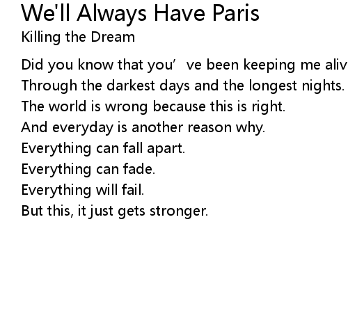 | Song | We'll Always Have Paris |
