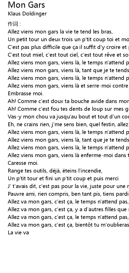 | Allez viens mon gars, viens là enferme-moi dans tes bras | |